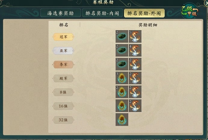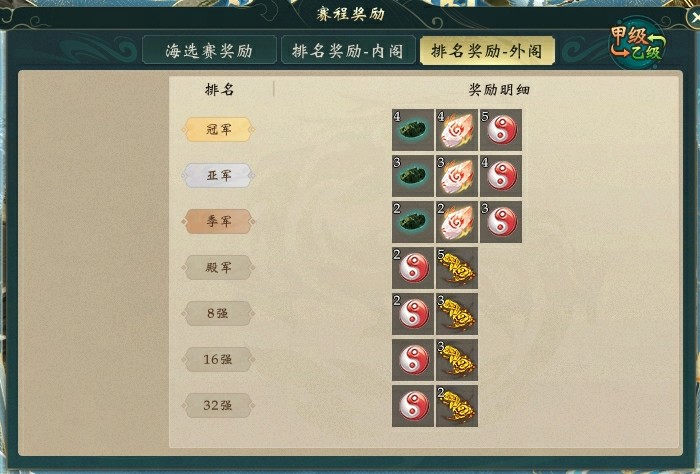 ④ 海选赛前32名队伍晋级内阁赛区,后32名队伍晋级外阁赛区;